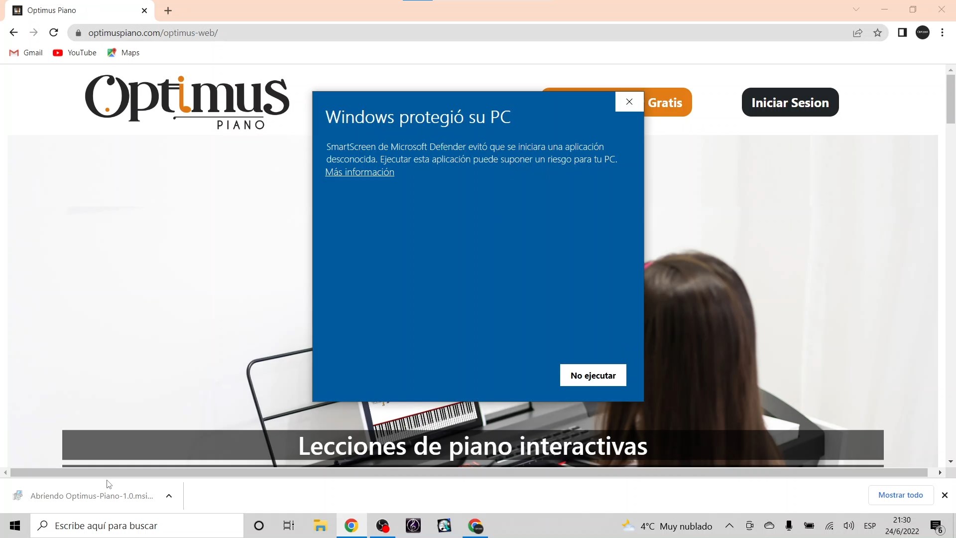Puede ocurrir que tu antivirus bloquee el acceso de la aplicación a internet. Quizás debas desactivarlo por unos minutos o agregar Optimus PIANO como una aplicación de confianza.