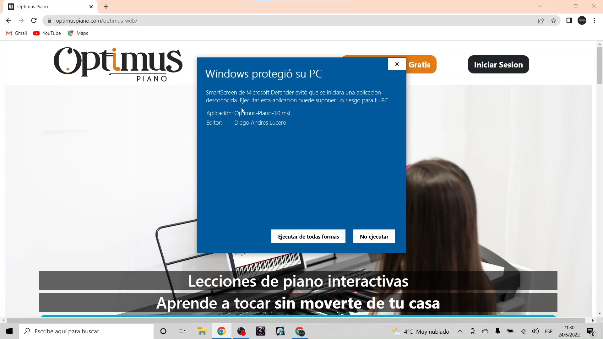 Paso 2: Clickea en el instalador y windows te mostrará esta imagen.